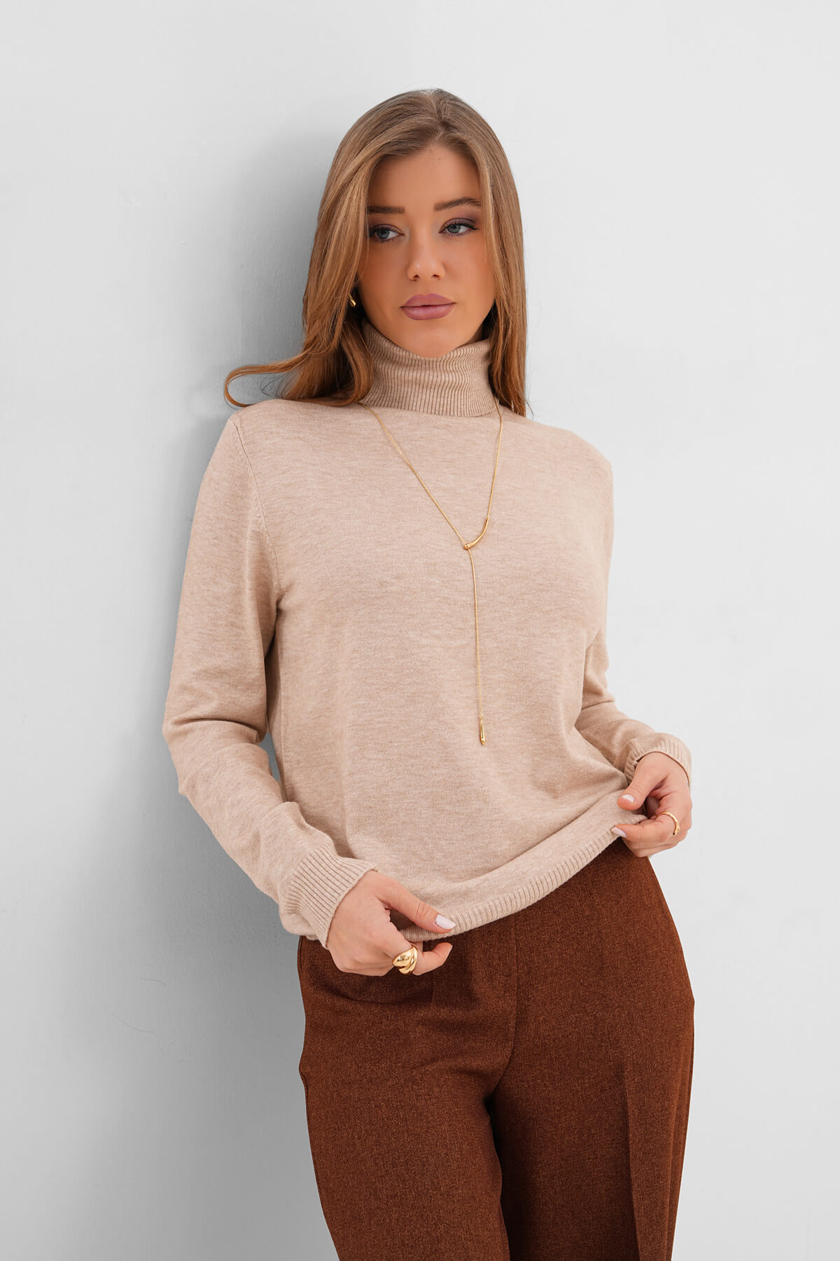 Boğazlı Triko Kazak MDG-22701 Bej