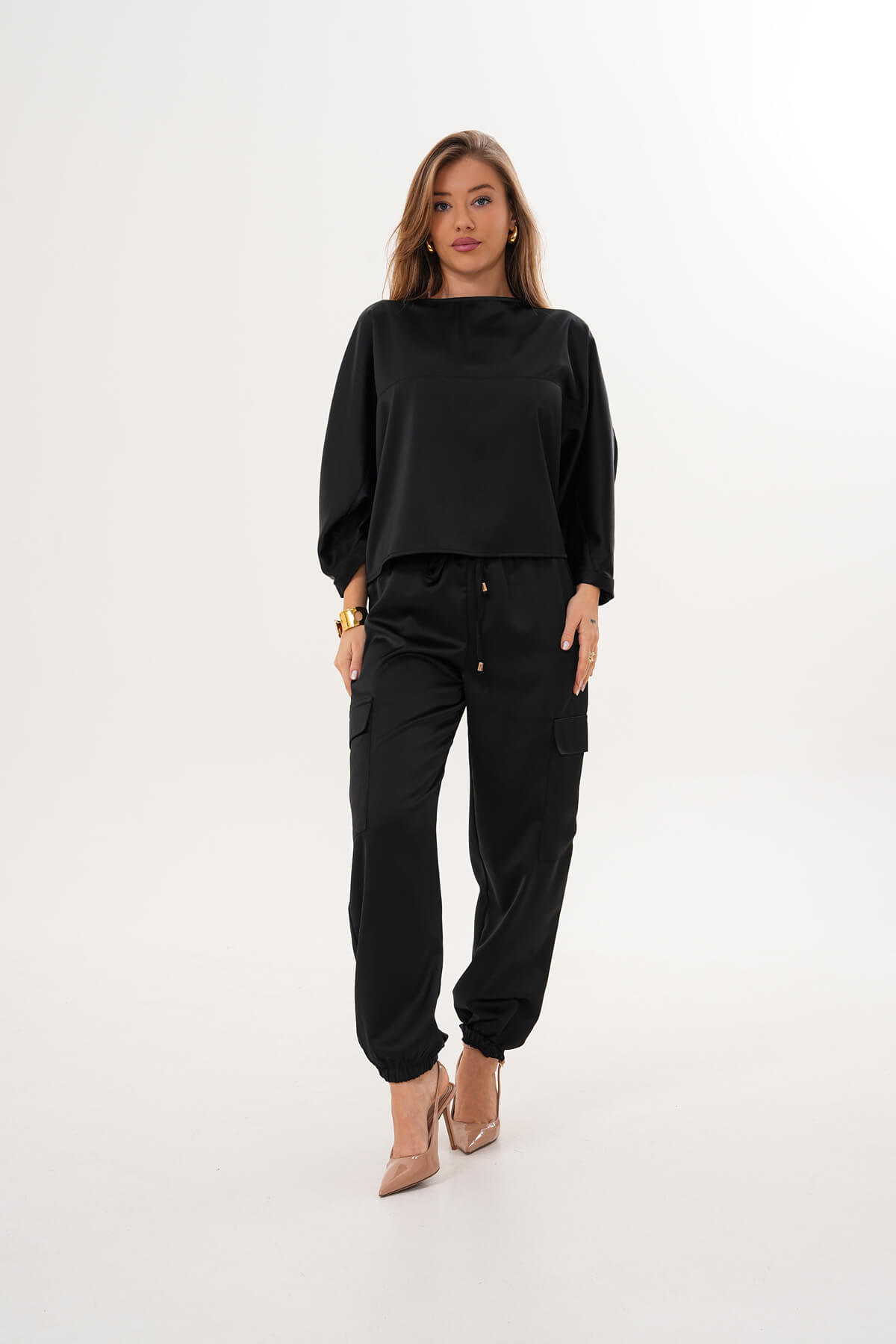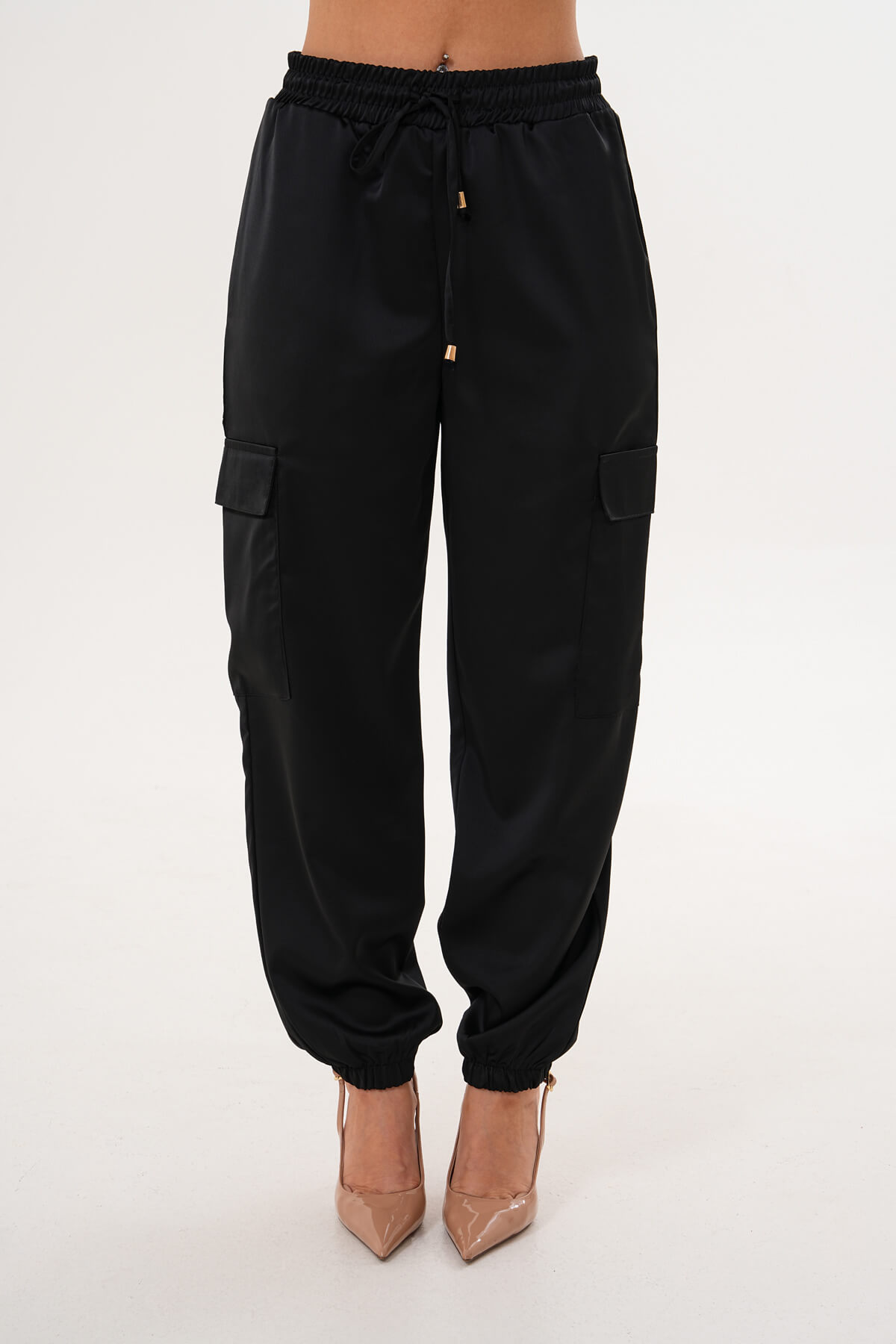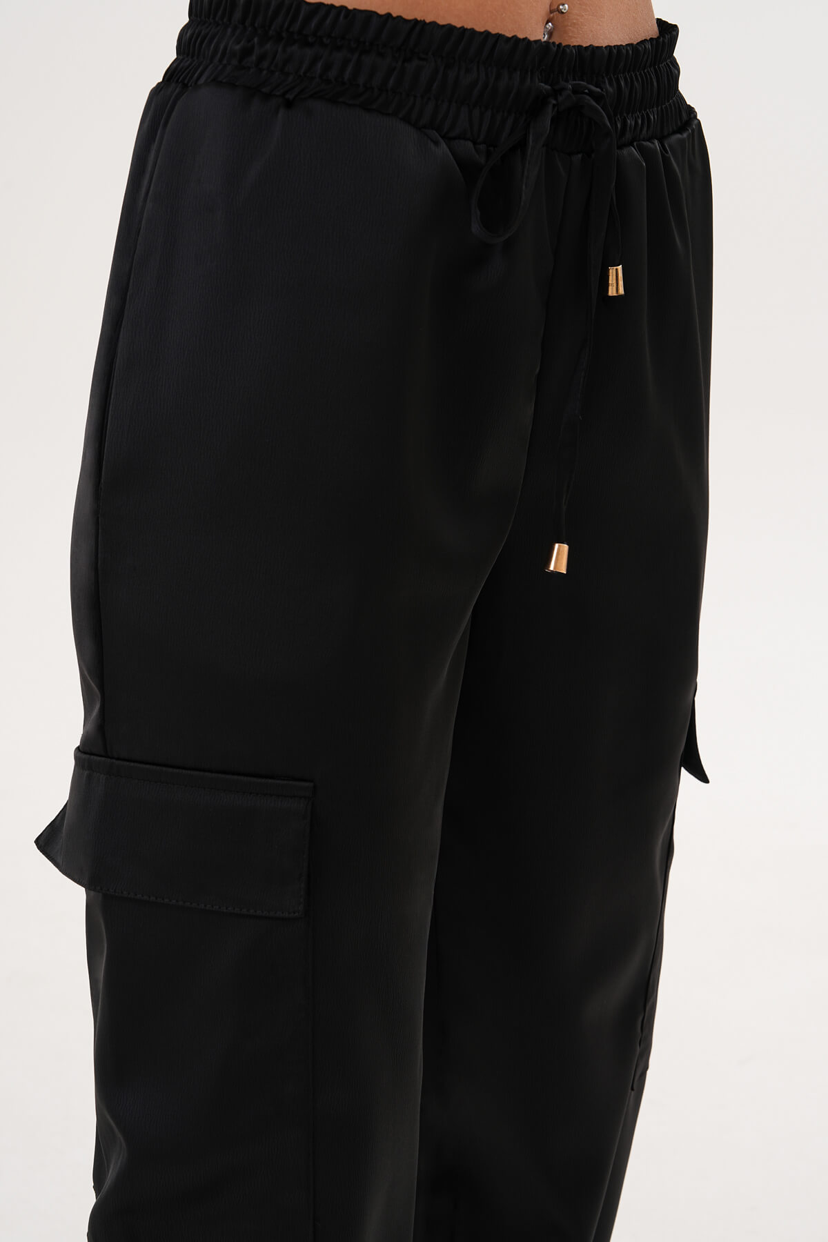 Açıklama: Lastikli ve büzgülü bel kısmı kordonlu pantolon. Yan dikişte ve kargo cepli, paçası lastikli model.