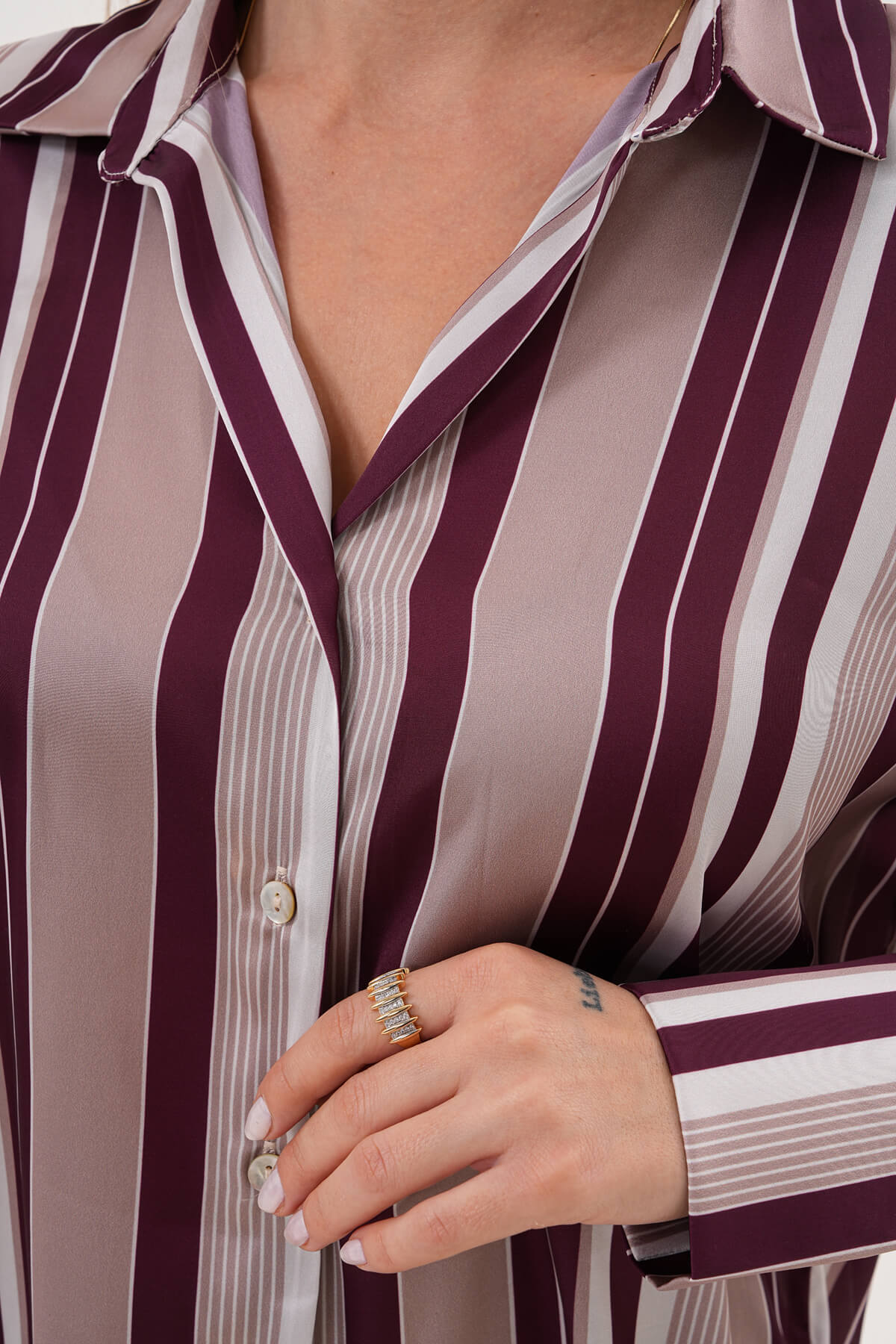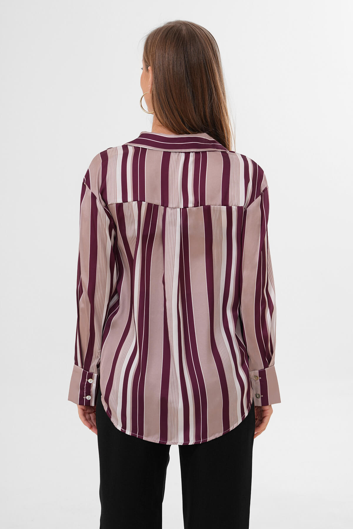 Çizgili Saten Gömlek MDG-25-D-32 Bordo Çizgili