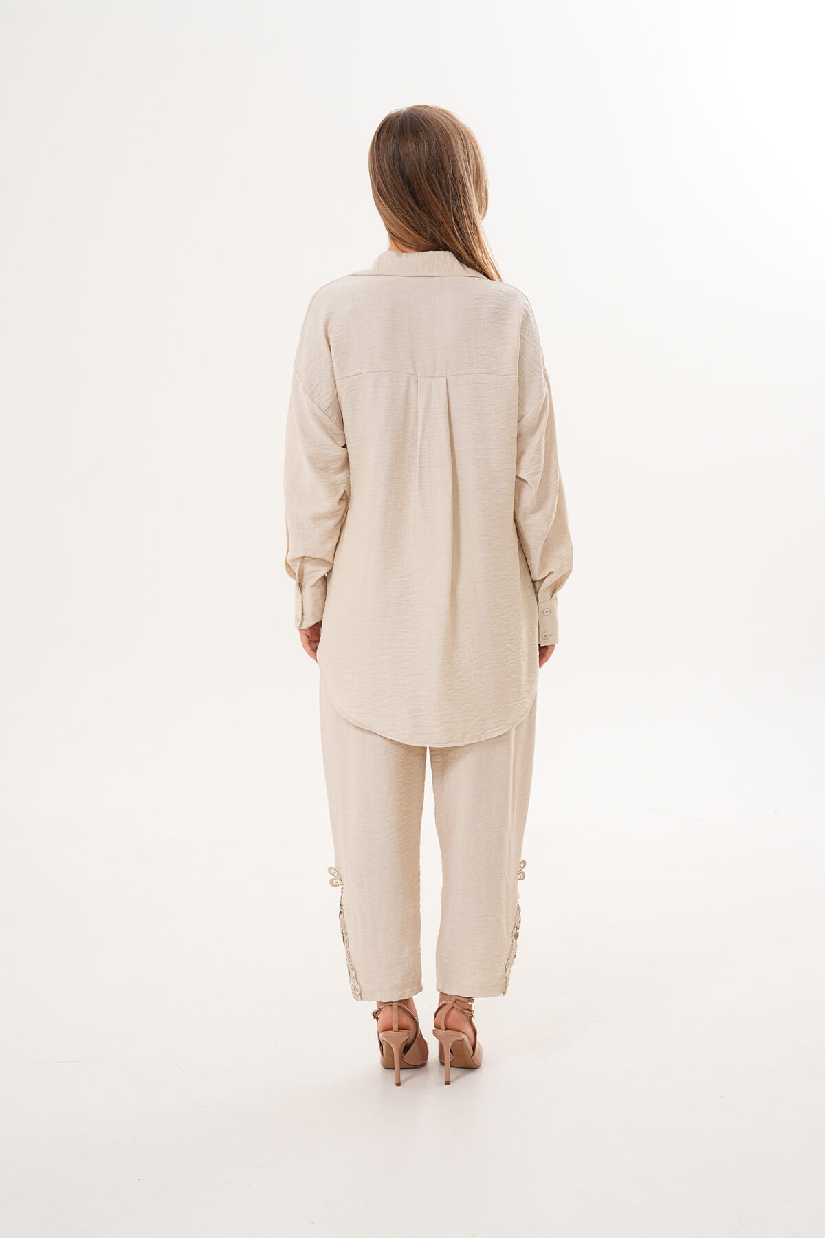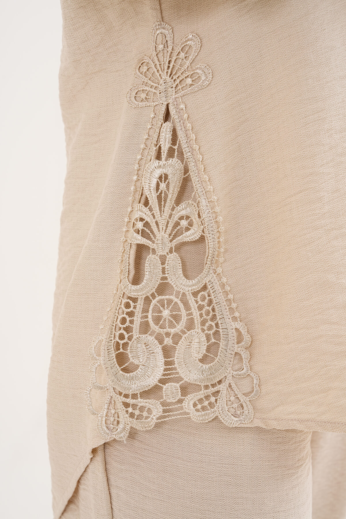 Dantel Detaylı Gömlek MDG-25-D-77 Bej