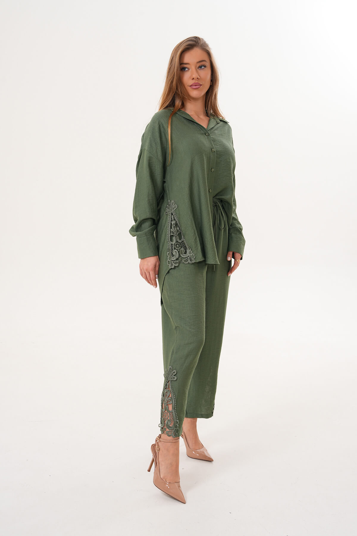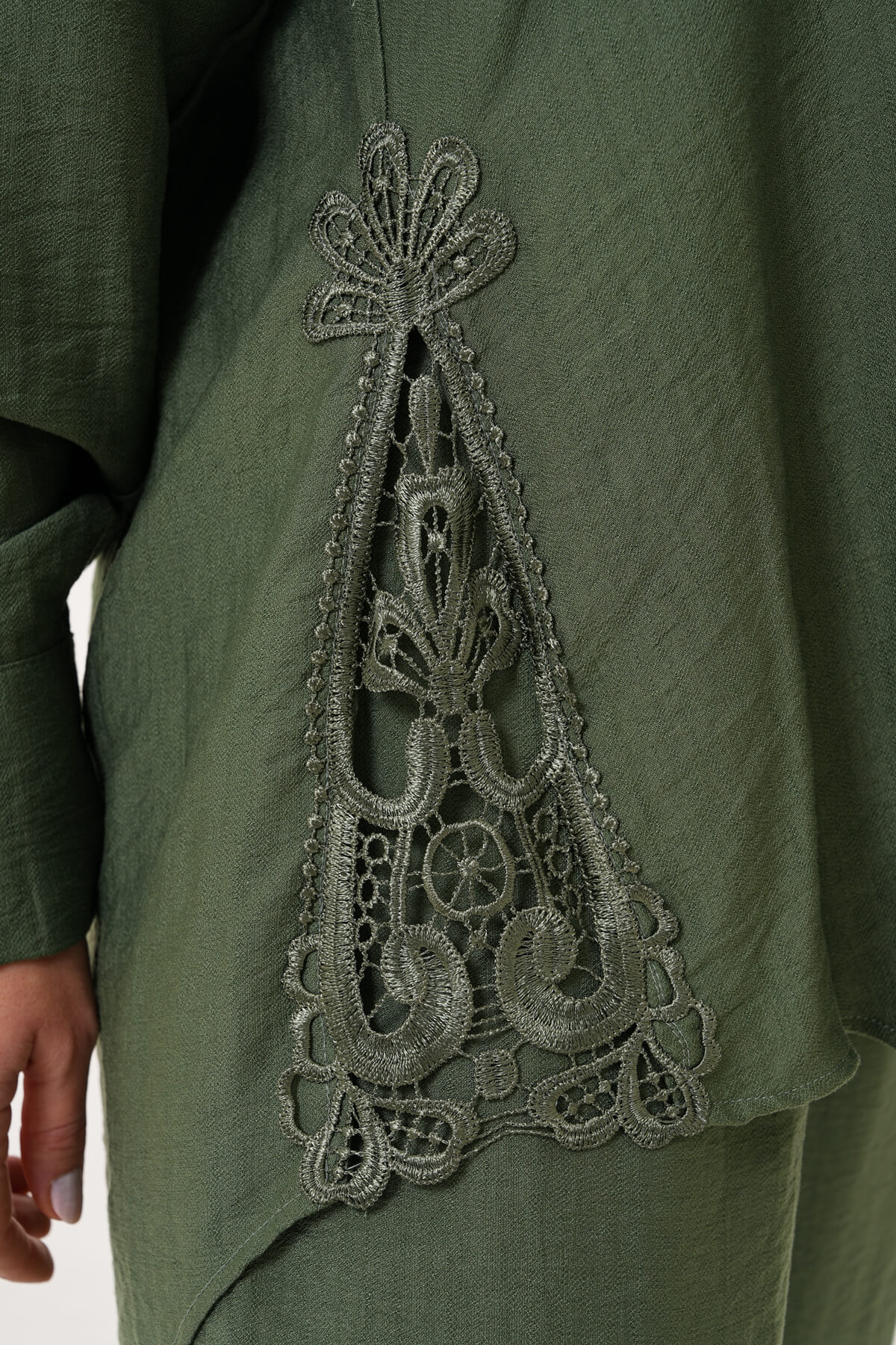 Dantel Detaylı Gömlek MDG-25-D-77 Haki