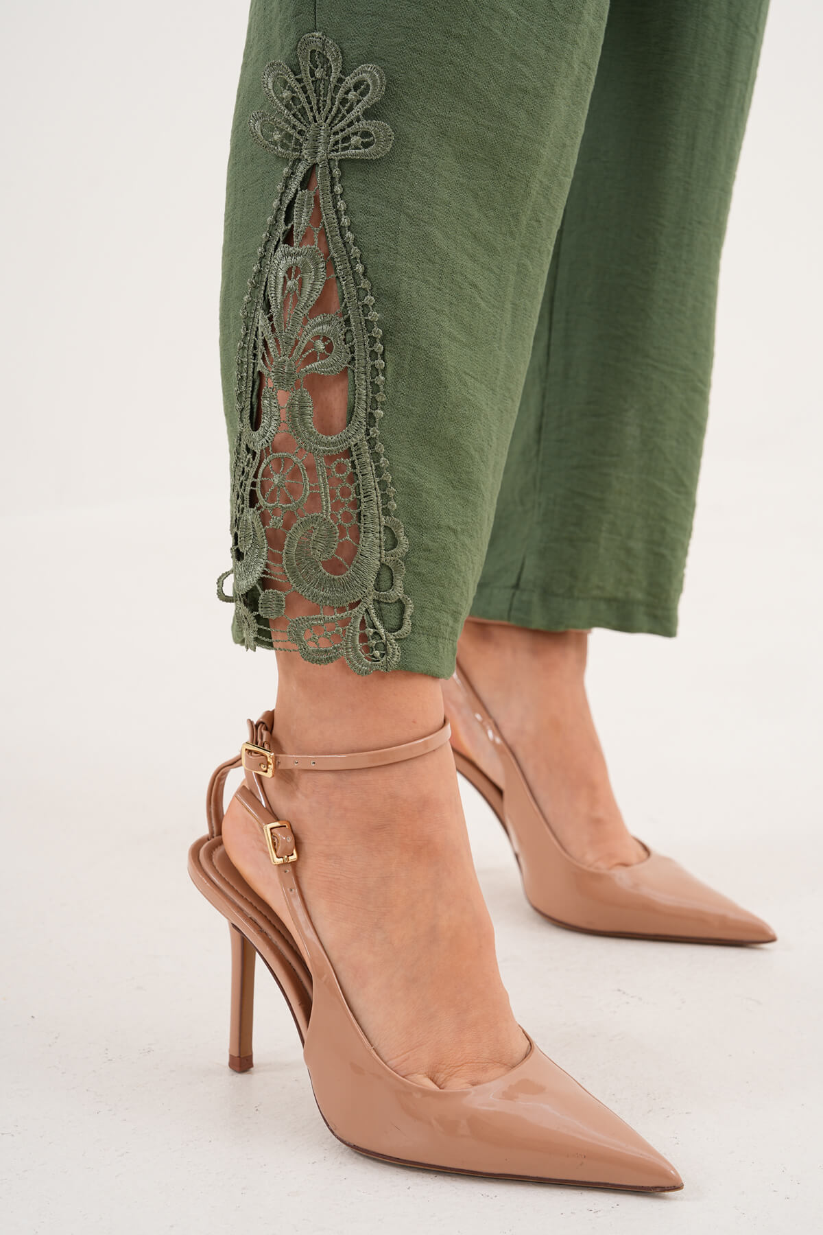 Dantel Paça Detaylı Pantolon MDG-25-D-77-P Haki