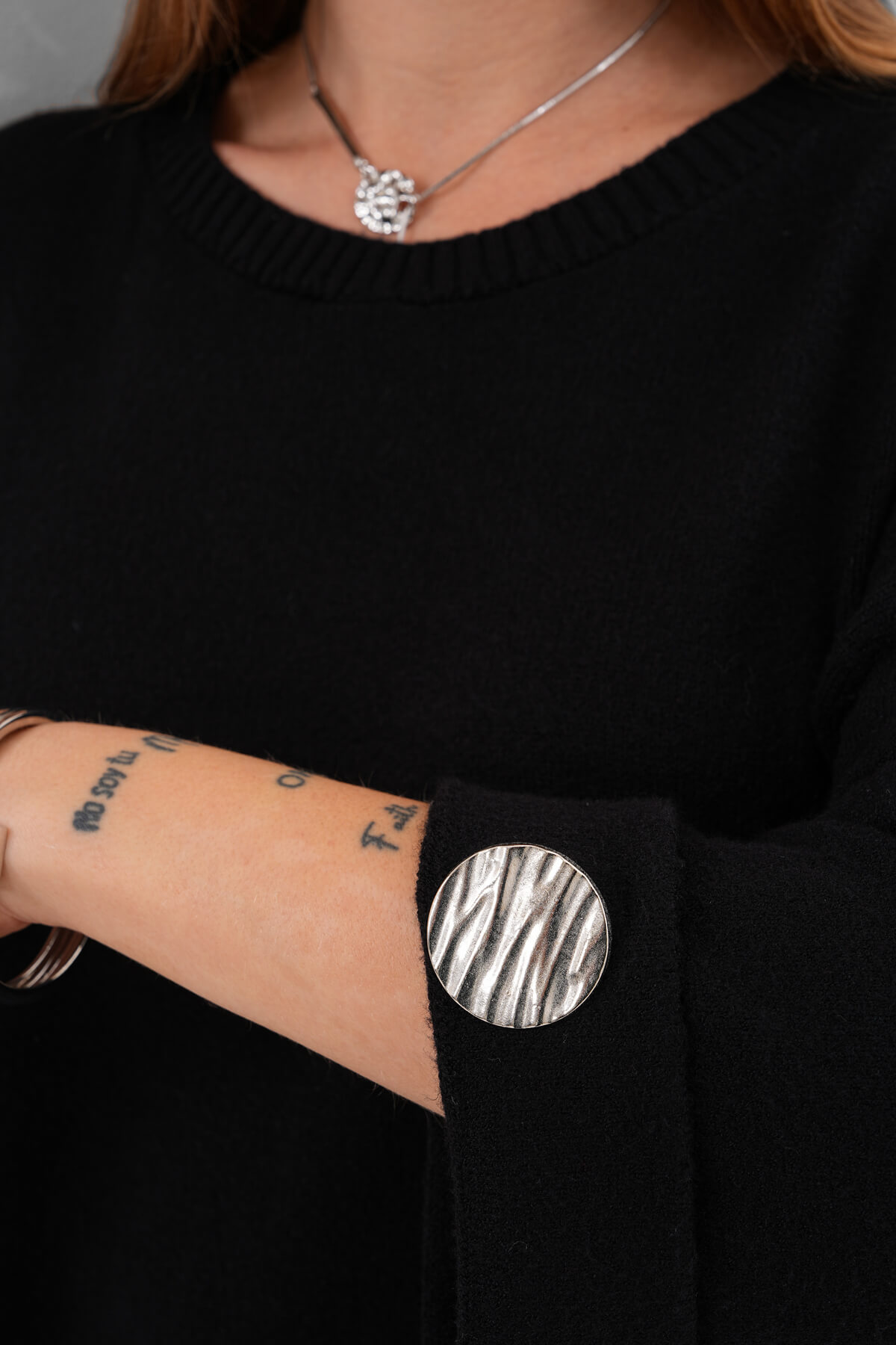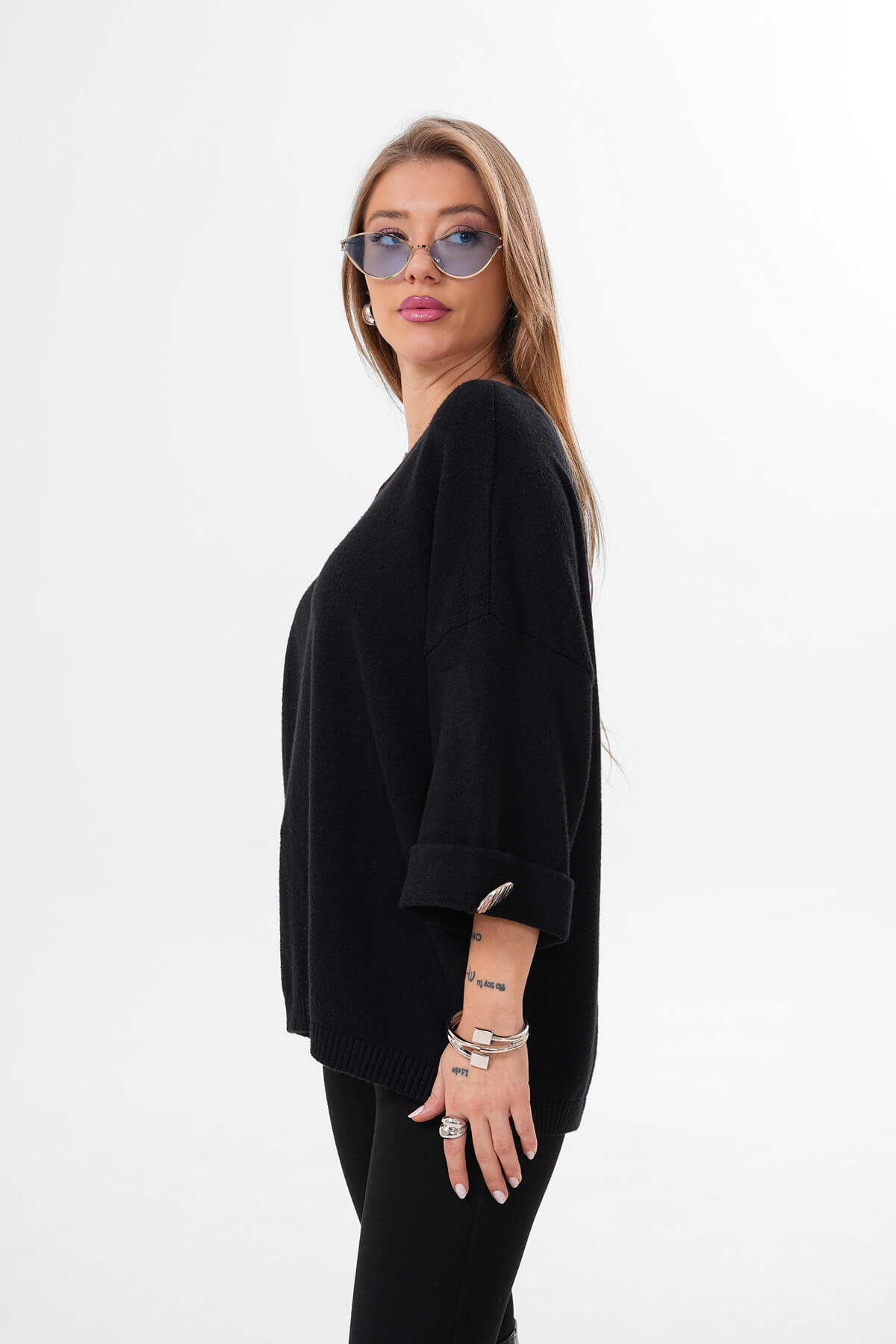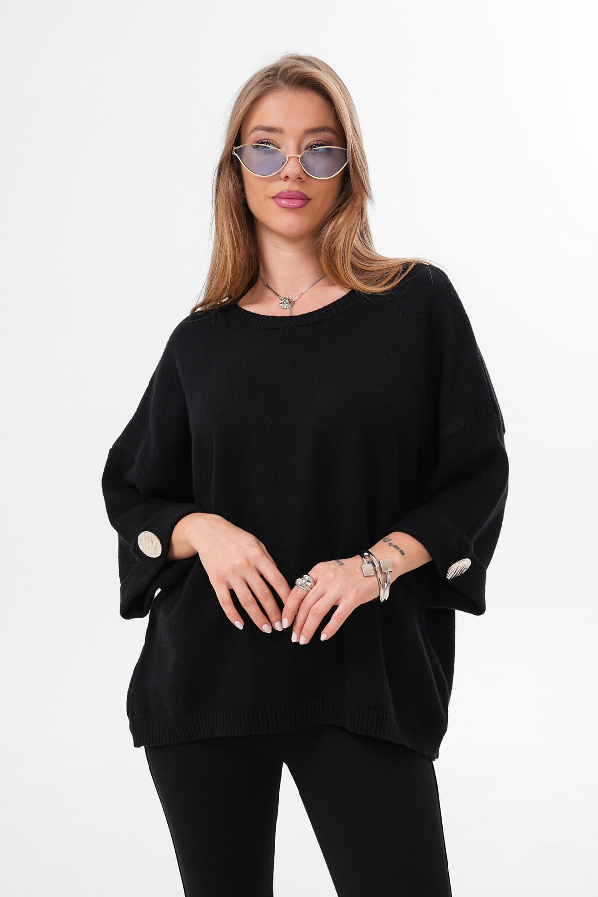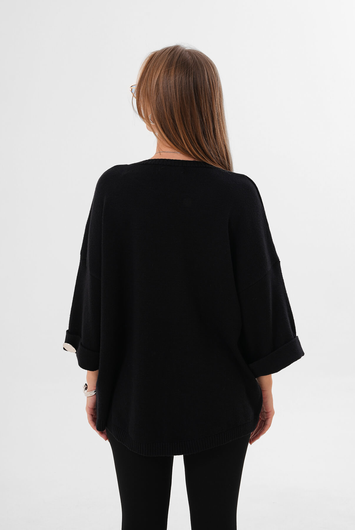 Düğme Detaylı Triko Kazak MDG-2565 Siyah