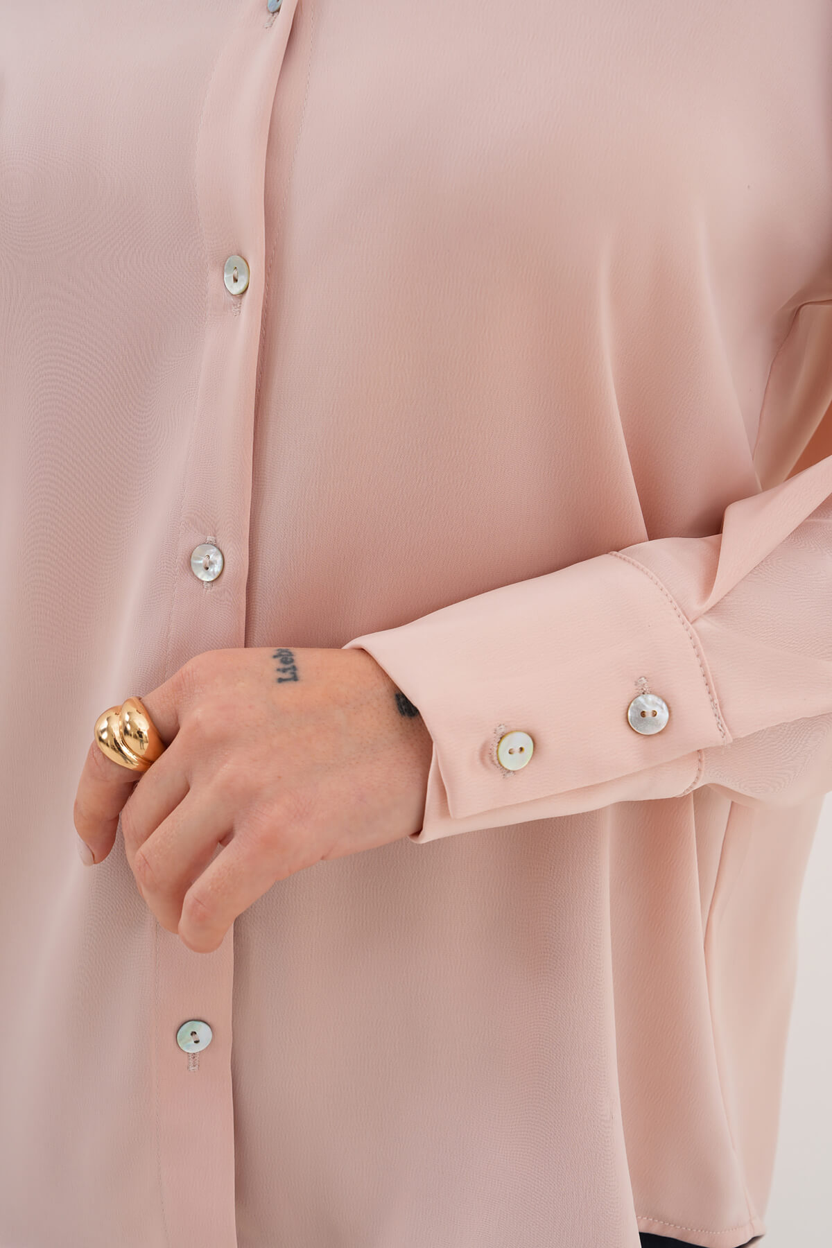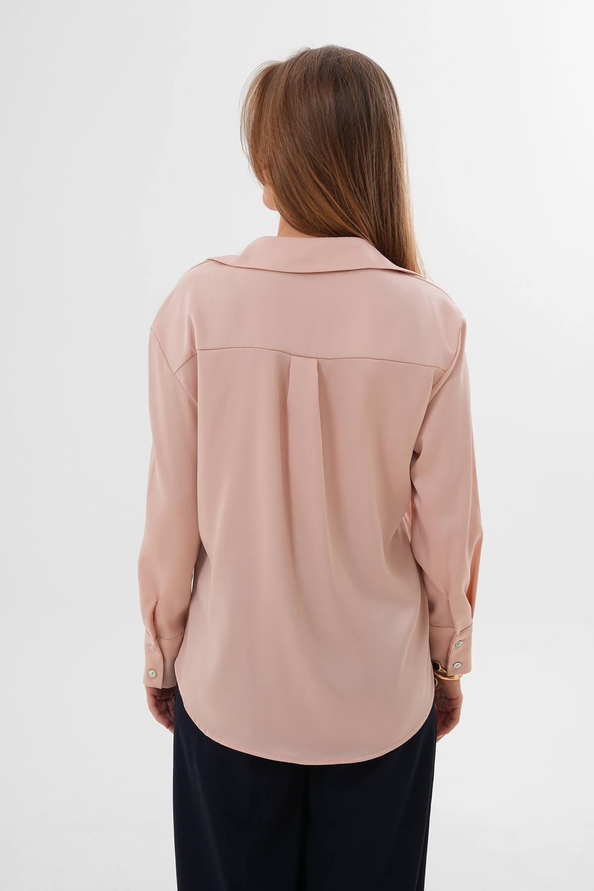 Düz Saten Gömlek MDG-25-D-10490 Bej