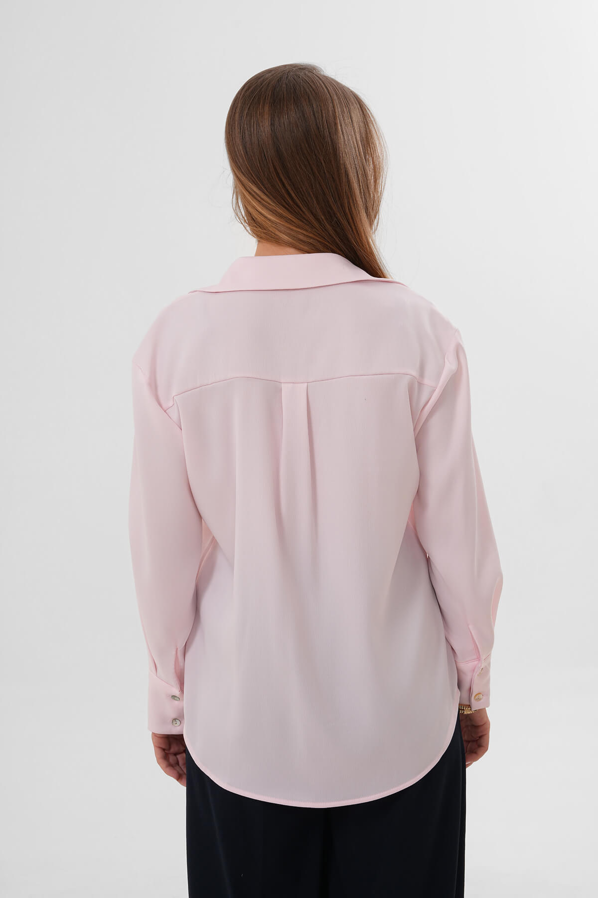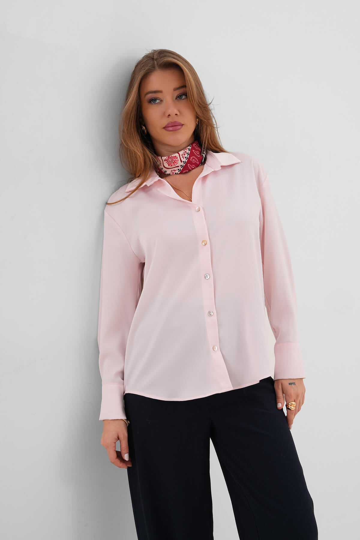 Düz Saten Gömlek MDG-25-D-10490 Pudra