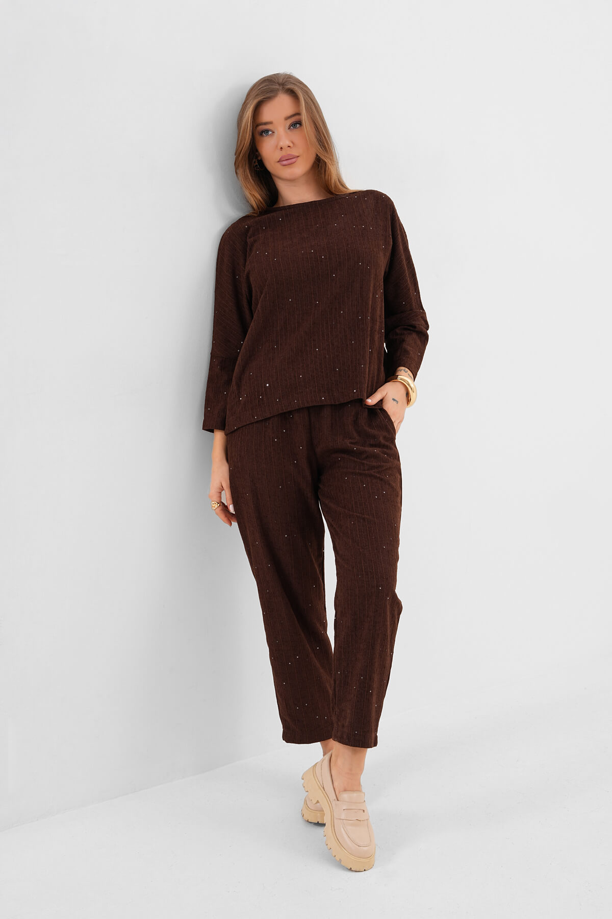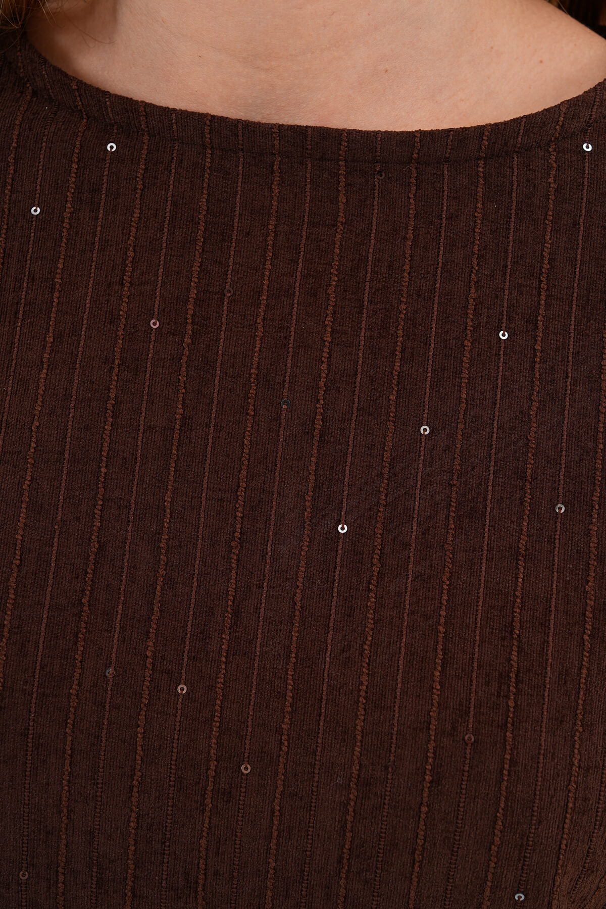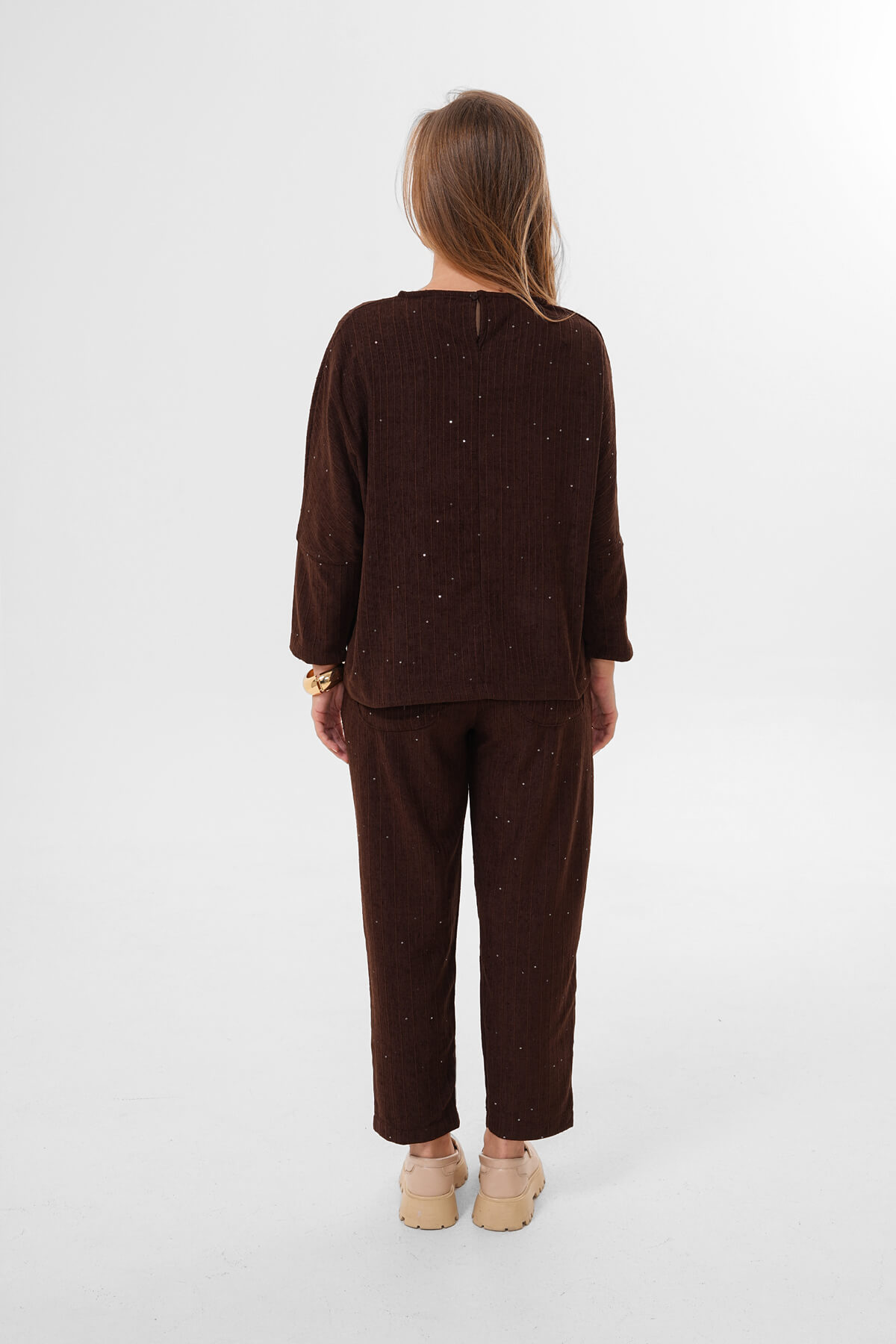 Kadife Pul Paletli Bluz MDG-25-D-105 Kahverengi