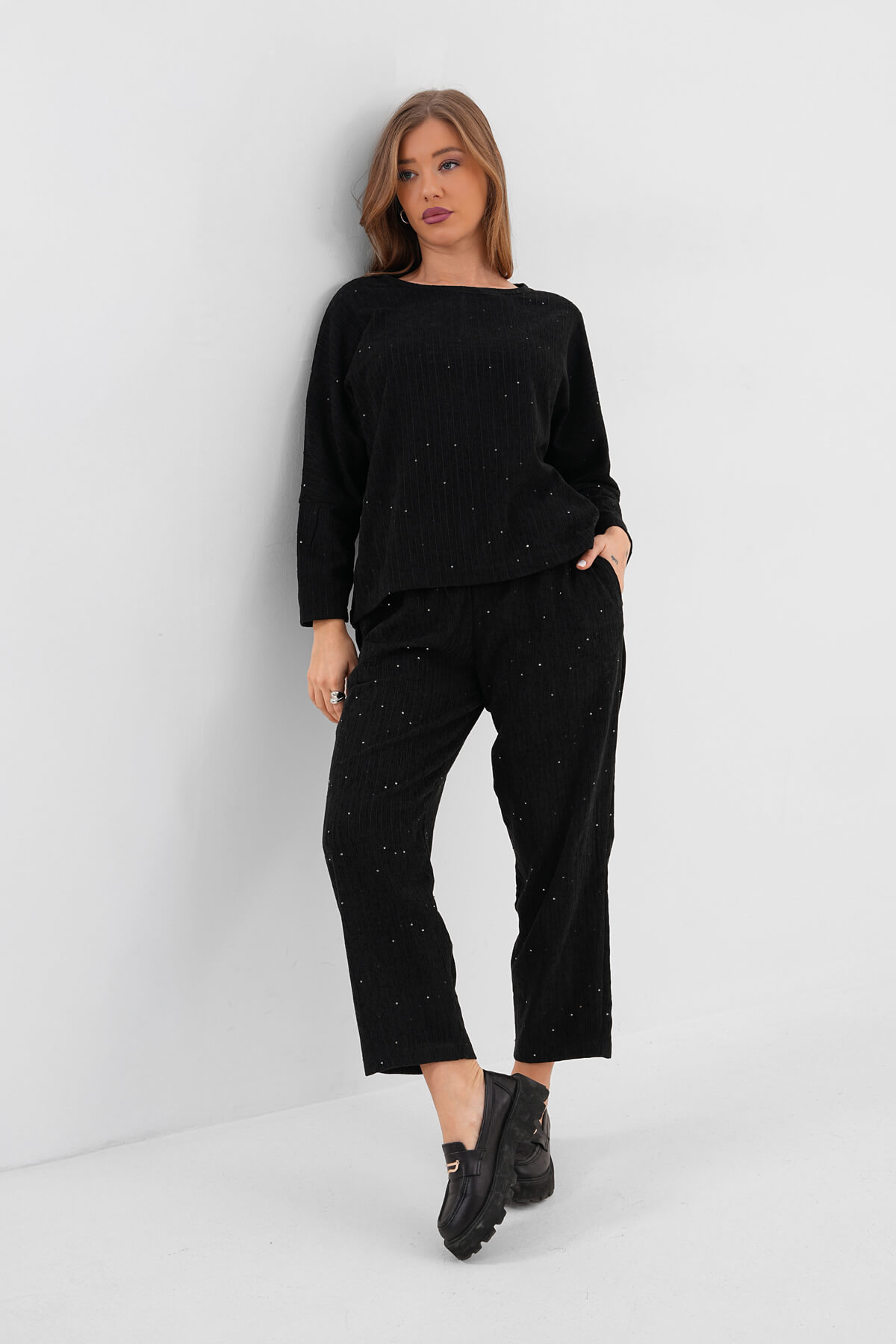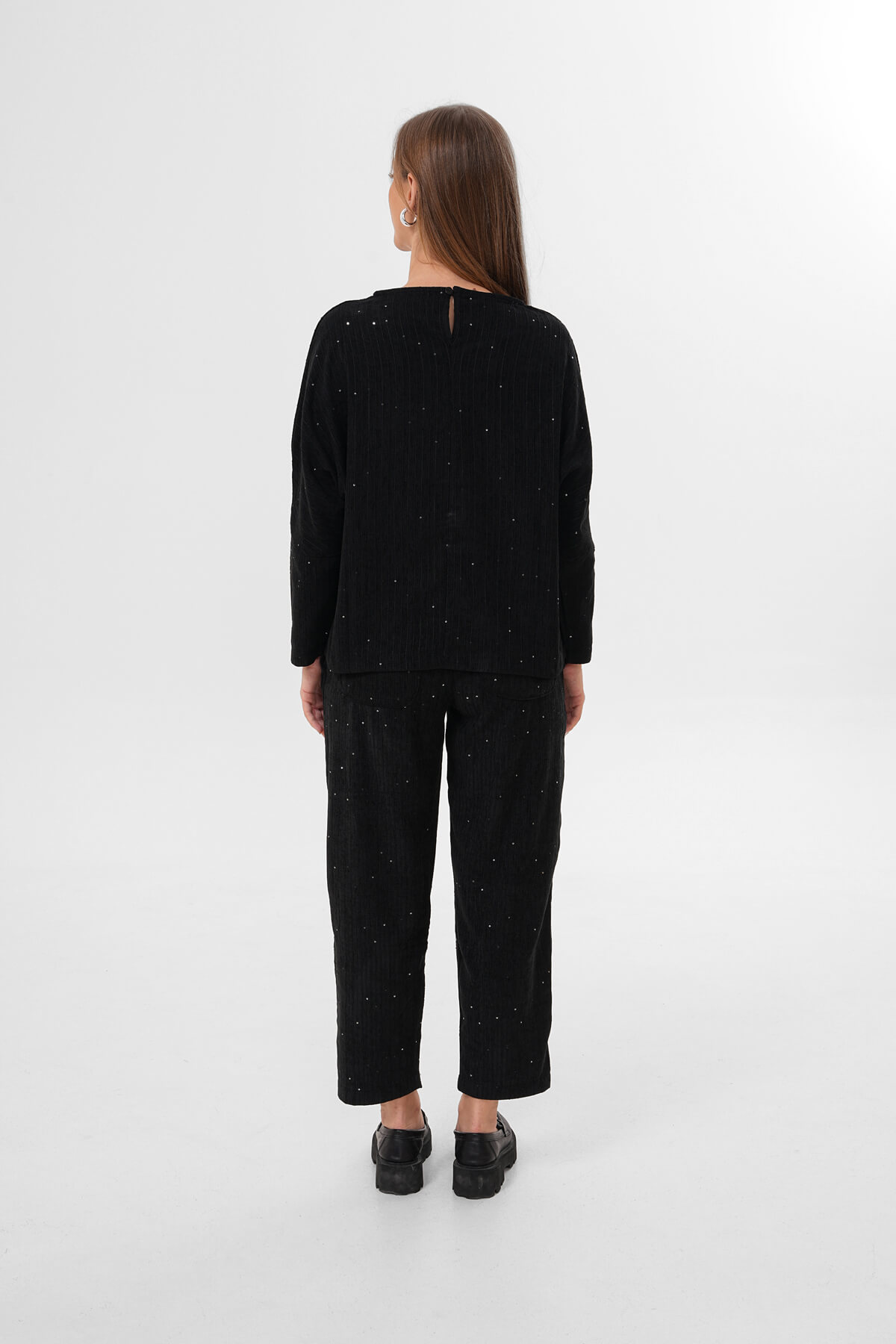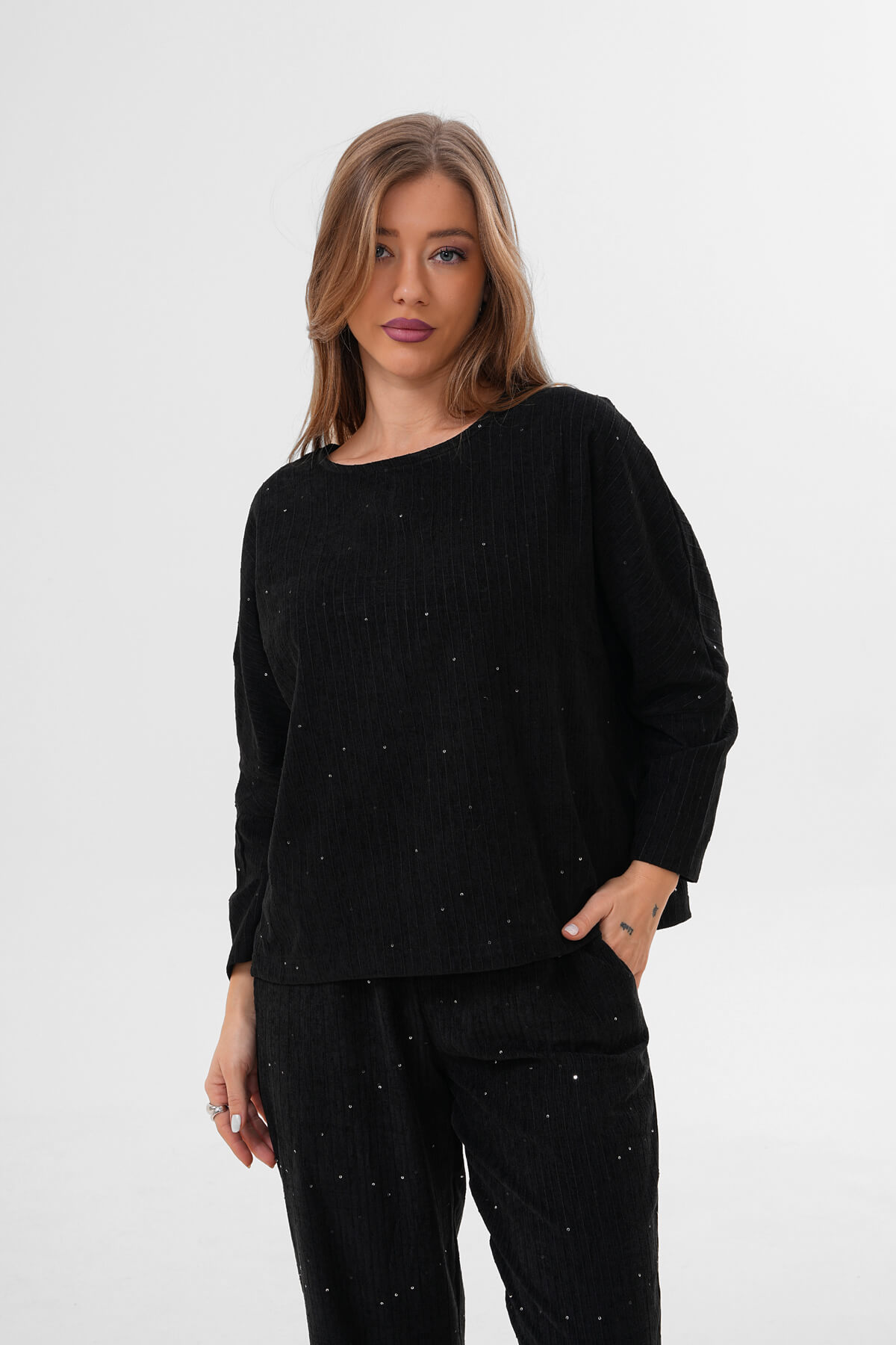 Kadife Pul Paletli Bluz MDG-25-D-105 Siyah