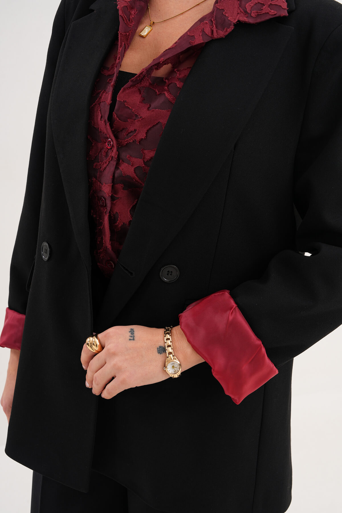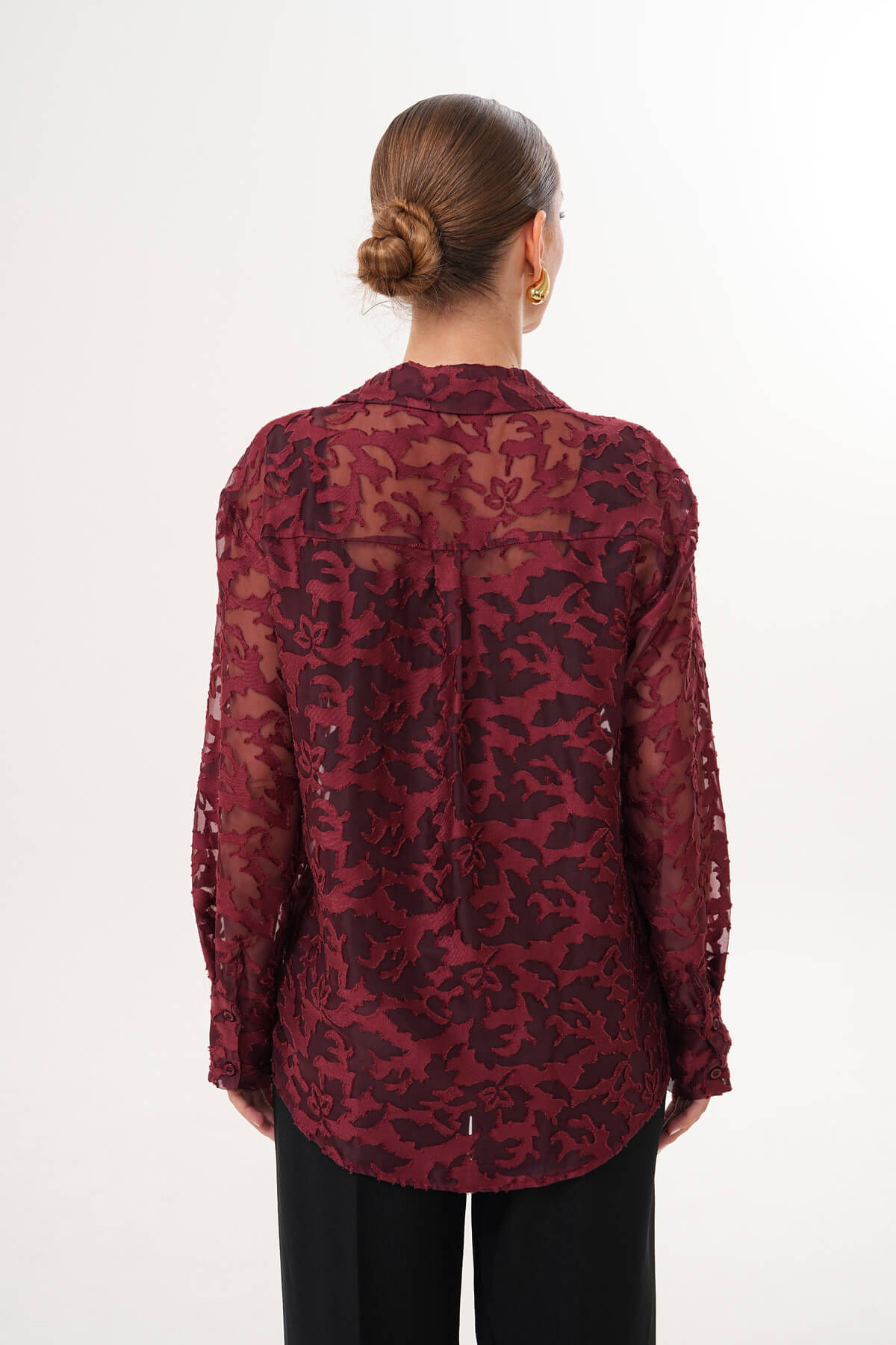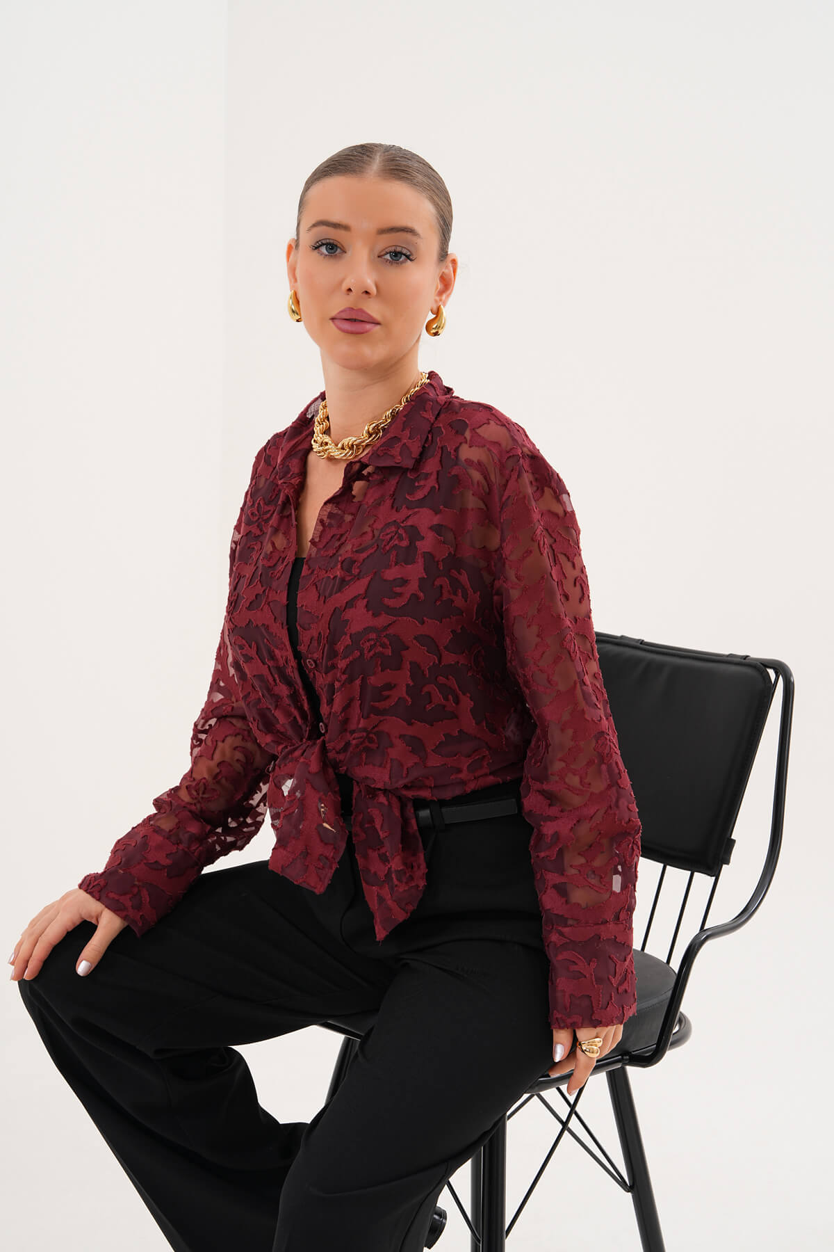 Kırışık Dokulu Transparan Puantiyeli Gömlek MDG-25-06 Bordo