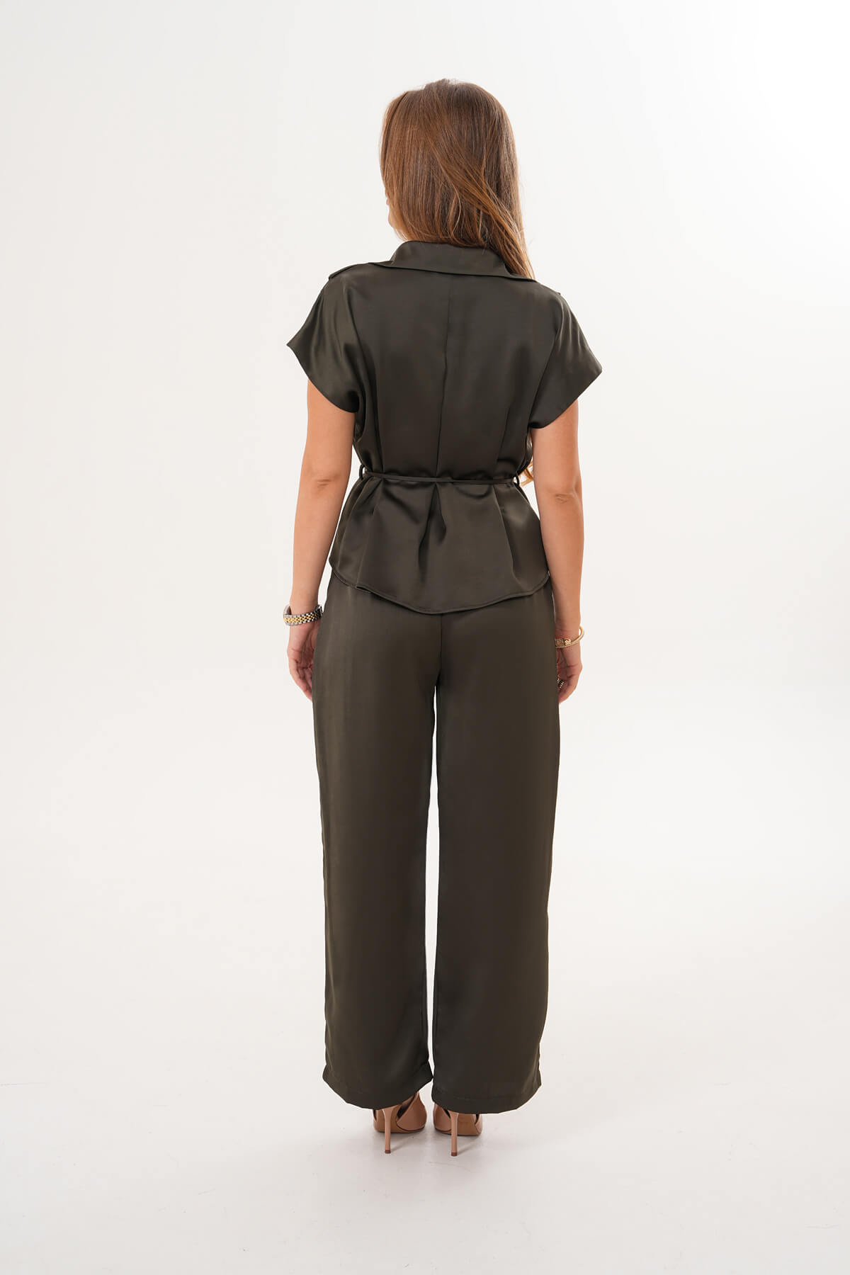 Kısa Kollu İp Kemerli Saten Gömlek MDG-25-D-81 Haki