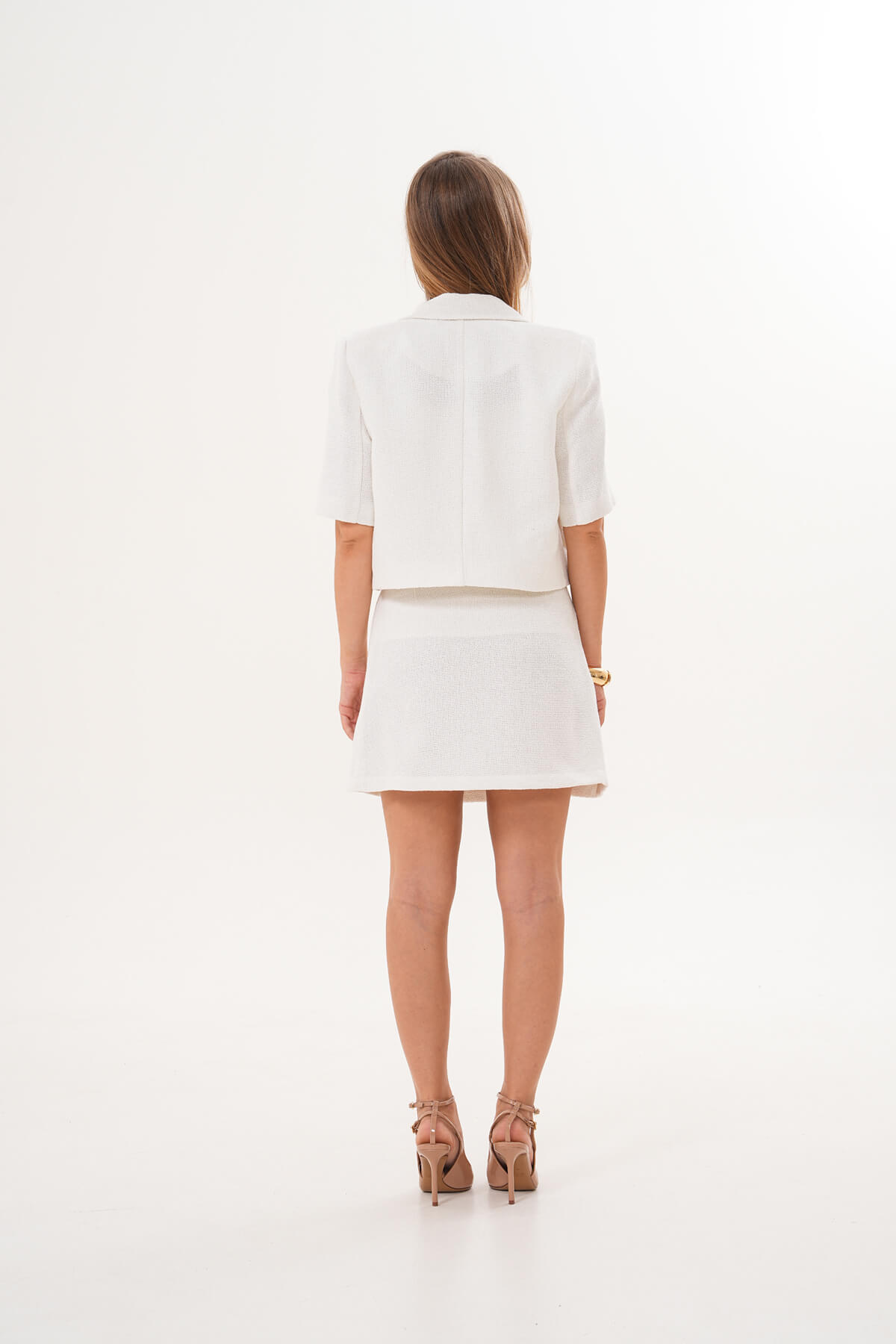 Şanel Kumaş Yalancı Cepli Blazer Ceket MDG-5186 Beyaz