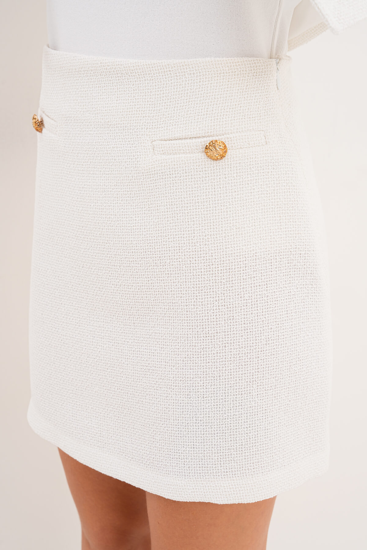 Şanel Mini Etek MDG-5186-A Beyaz
