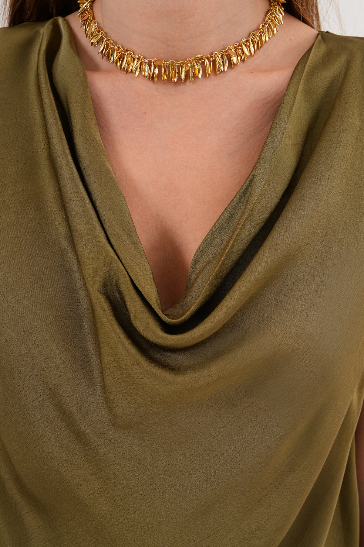 Saten Drapeli Kolsuz Gömlek MDG-25-D-102 Haki