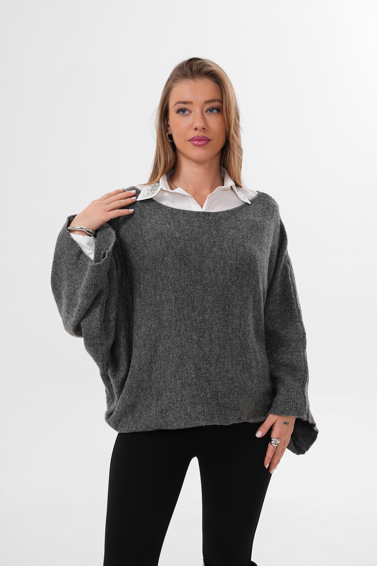 Uzun Kollu İnce Triko Bluz MDG-1009 Kahverengi