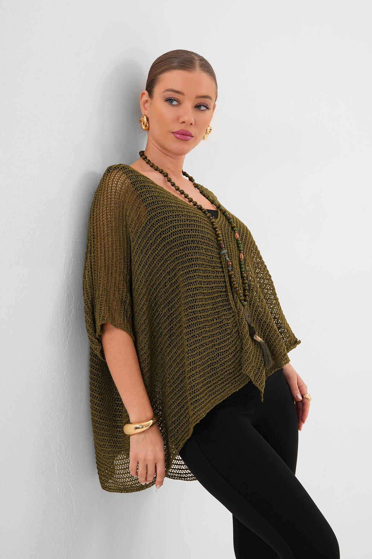 V Yaka Salaş Kesim Örgü Triko MDG-1006 Haki