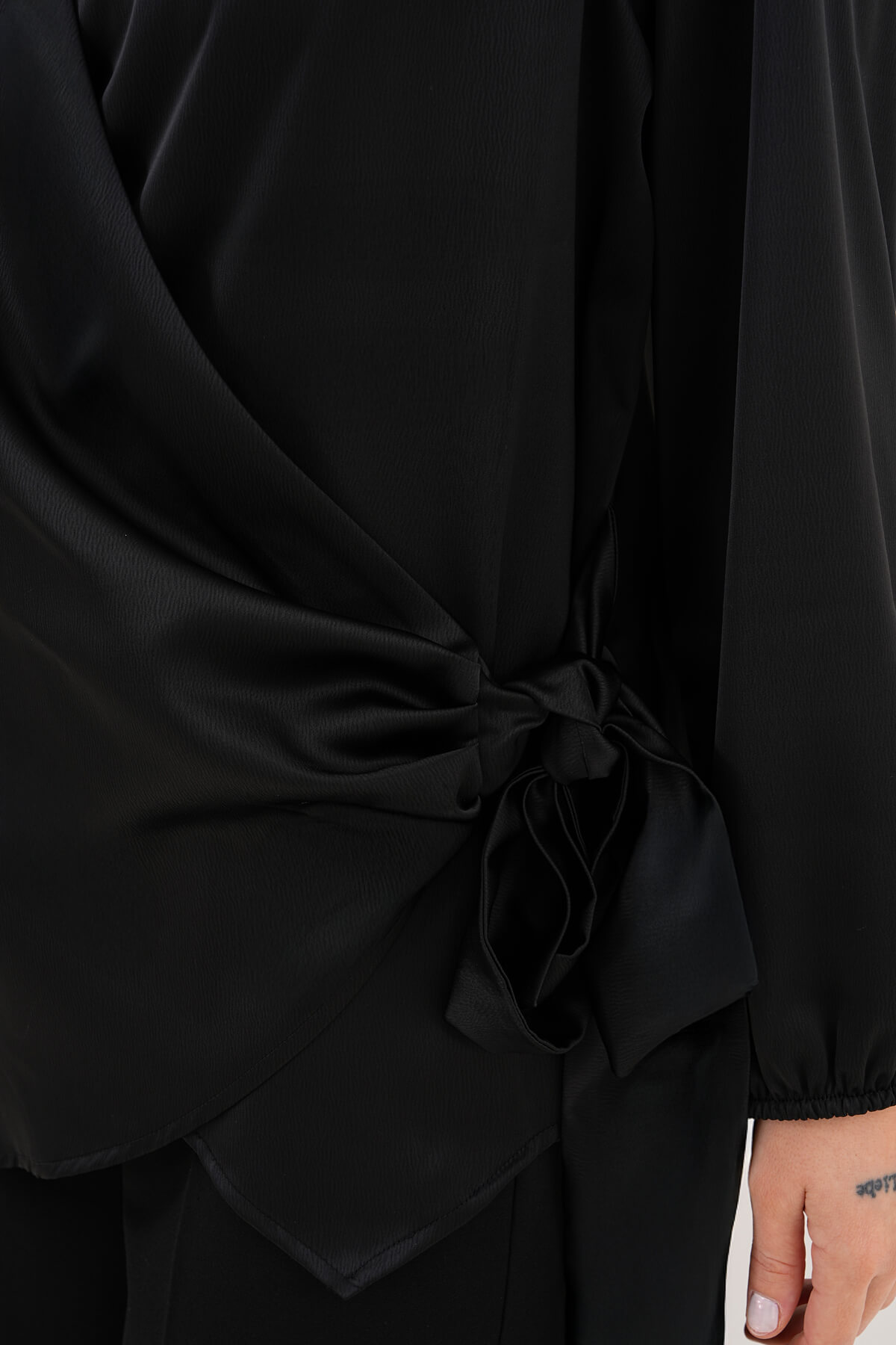 Yandan Bağlamalı Saten Gömlek MDG-25-D-10704, dökümlü saten dokusu ve zarif bağlama detayıyla şıklığı modern bir çizgide sunar. Pamuk ve polyester karışımlı saten kumaşı sayesinde hem konforlu hem de pürüzsüz bir kullanım sağlar. Yan bağlama detayı, gömleğe feminen bir hareket kazandırırken vücut hatlarını zarif şekilde vurgular.