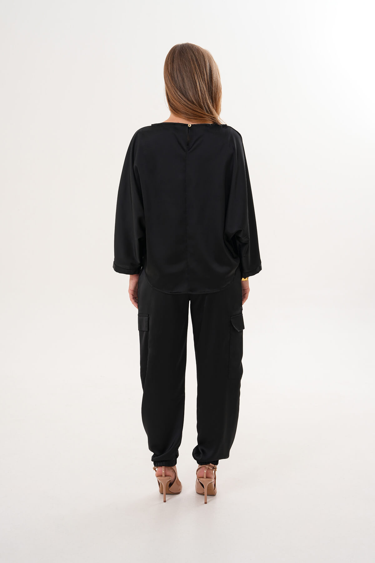 Açıklama: Arka yakada düğme kapamalı. Önde yatay dikişli. 3/4 kollu, yarasa kol formunda.