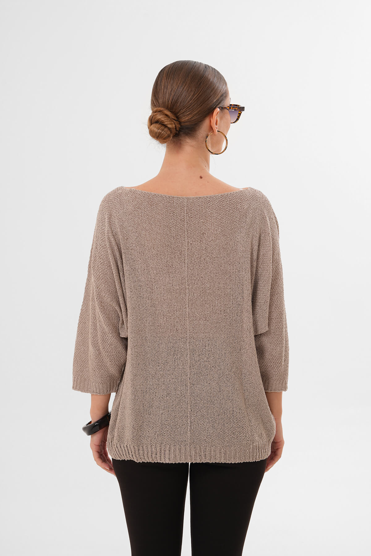 Yuvarlak Yaka Asimetrik İnce Örgü Triko Taş